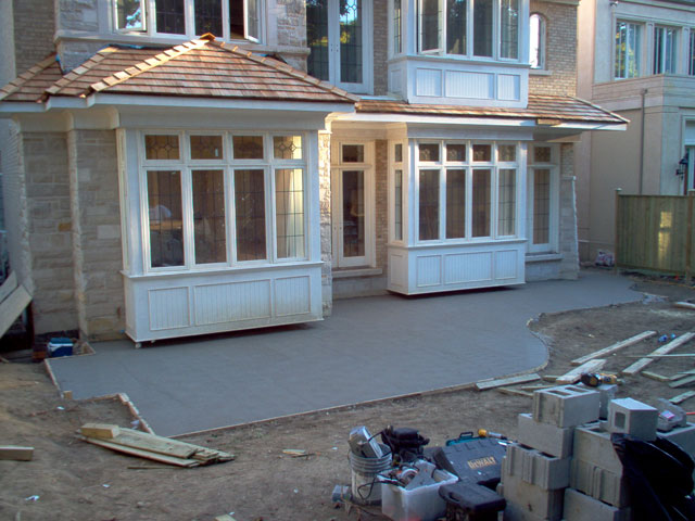 Proper base preparation, steel reinforcement and expansion joints are vital when ensuring concrete longevity. Once poured, concrete is not easily repaired. We take a great deal of precaution in trying to avoid "cracking" and "heaving". Canadian winters or not particularly easy on concrete so any pre-pour steps must be done correctly |