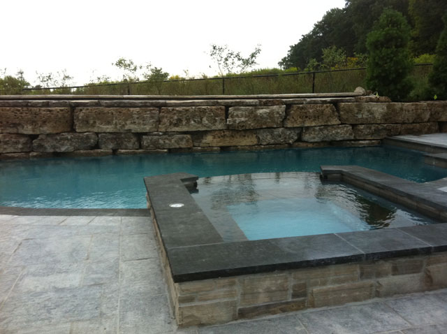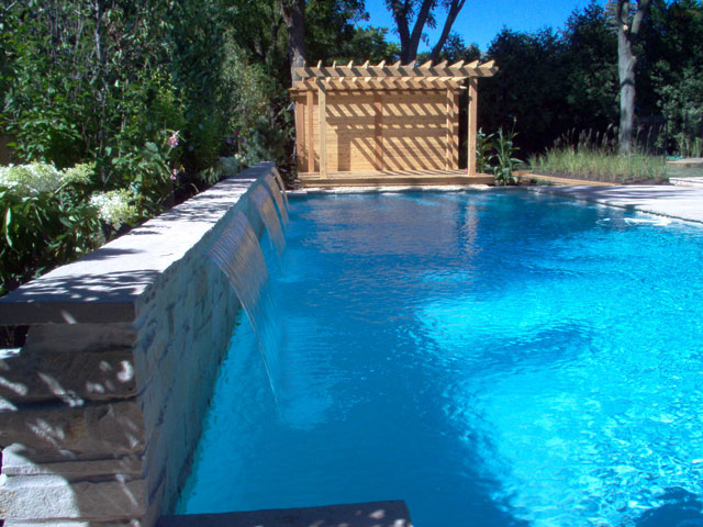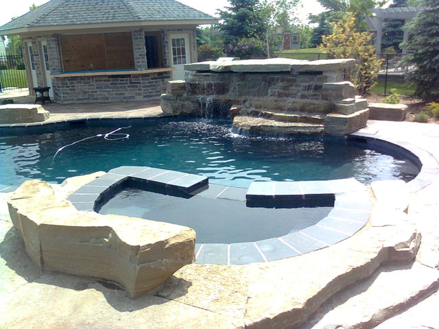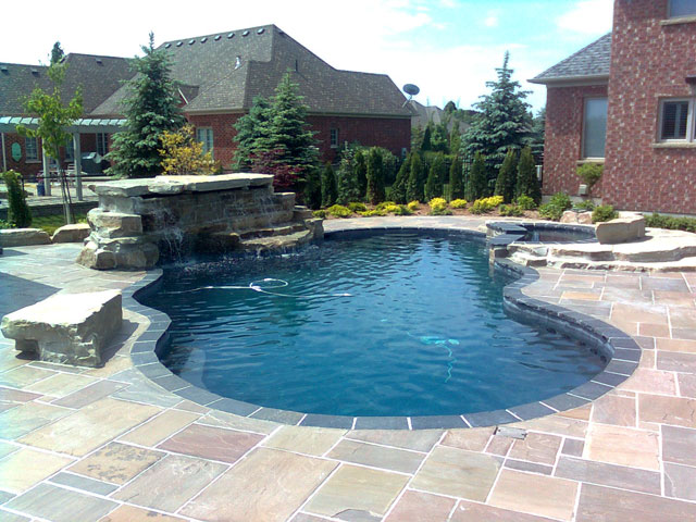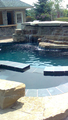 AFC constructs the fountain from bottom up. We prepare a base that is frost protected not being moved with settling and frost. Many waterfall applications spill over into pools and is recycled though the waterfall. Proper depth and base preparation is absolutely imperative when constructing waterfalls. Often time’s waterfalls are simply attached to the edge of a pool not being properly placed. Waterfalls consist of several thousands of kilos of weight and pressure pushing against the side of a pool. Improperly constructed waterfalls can permanently damage a pool beyond repair. AFC will work together with any pool company to prepare proper footings during pool construction. Please have a look through our gallery. |